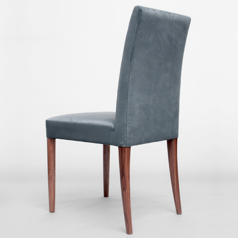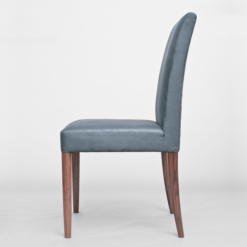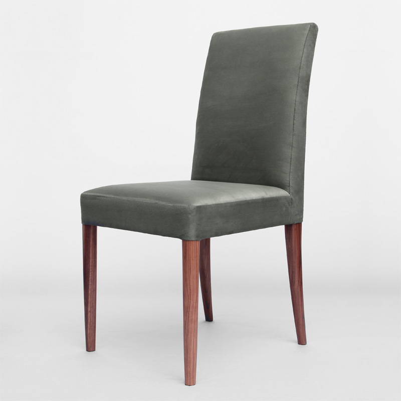 椅子としてのミニマムなスタイルの中に拘りを込めました。背板・座面にはしっかりとしたクッション性を持たせ、理想的な着座姿勢に体を支えます。背から脚へと繋がる曲面は、体重を受け止め安定感ある座り心地を生み出す様計算された形状です。
