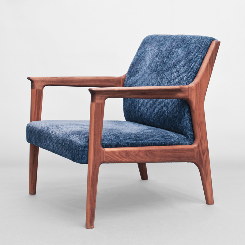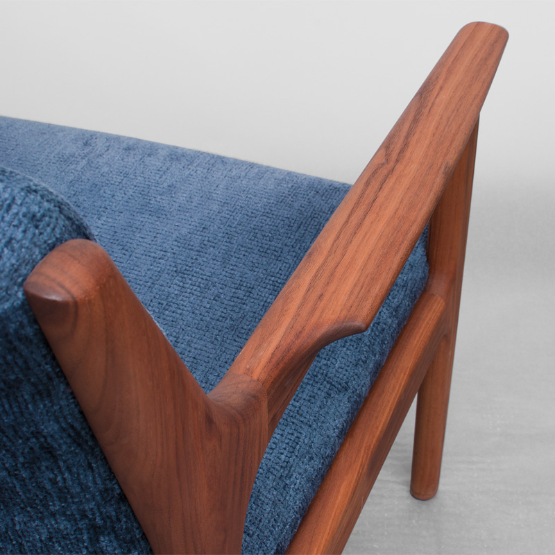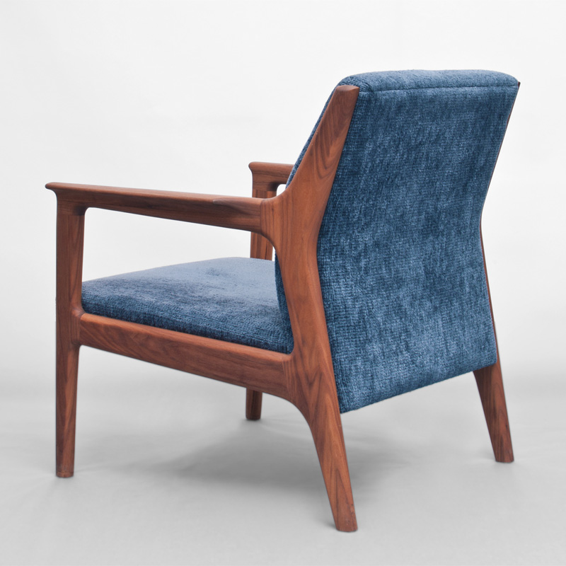 コーディネートのアクセントとなる印象的なラウンジチェアです。背中を押し上げる様にカーブを持たせた背もたれと、適度な張りのある座面のバランスで、体が沈み込まない理想的な座り姿勢をつくります。豊かな木の表情が味わえるフレームは、大きな木材から削り出し、丁寧に木組みし、安定感ある座り心地を支えています。
