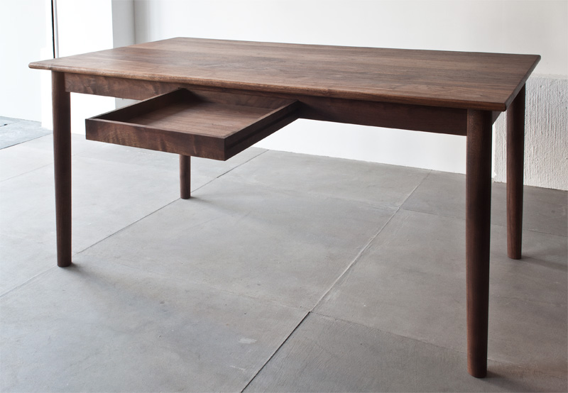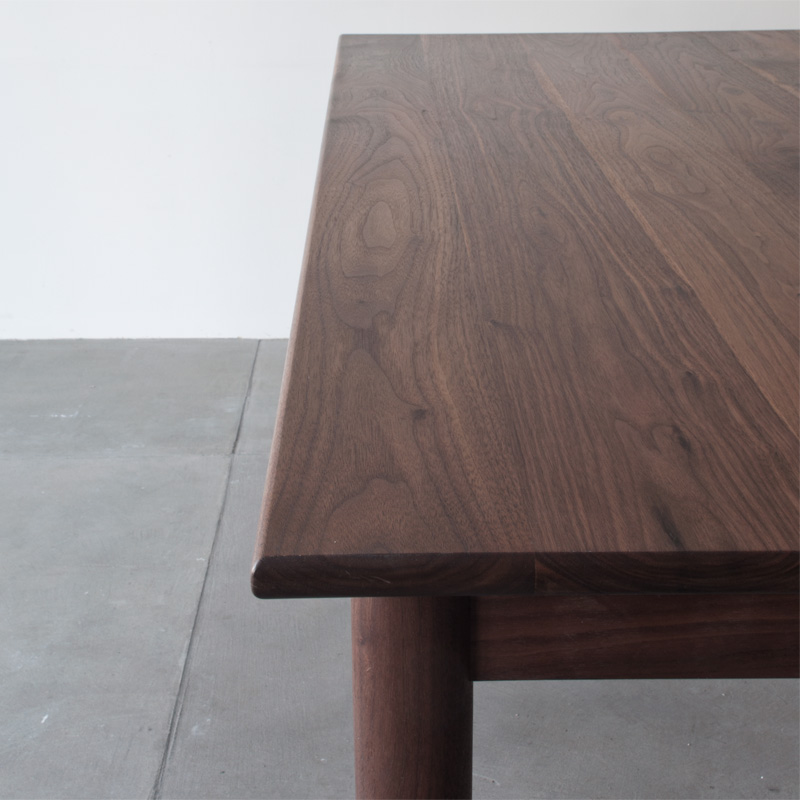 サイズオーダー、天板と脚の形状、抽き出し、樹種や仕上げにいたるまで細かく選択出来る、シンプルで飽きのこないスタンダードモデルのテーブルです。